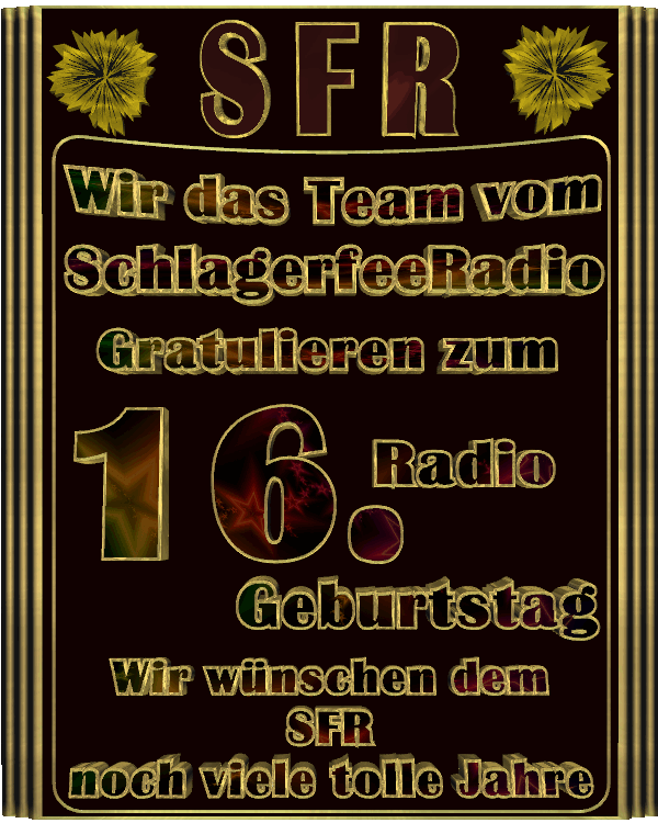 Auch ich wünsche auf diesem Weg dem Radio SFR alles alles Gute zum 16. Radiogeburtstag. Lasst es heute ordentlich krachen , und möge es noch Jahre so weitergehen. Gruß Euer Harry2109