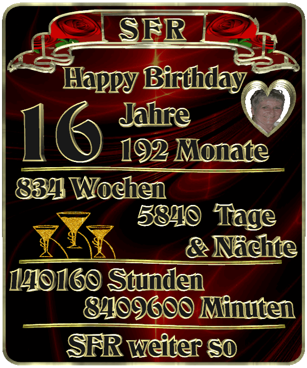 Kaum zu glauben aber wahr SFR wird heute 16 Jahr Auch von mir die herzlichsten Glückwünsche zu diesem Jubiläum.